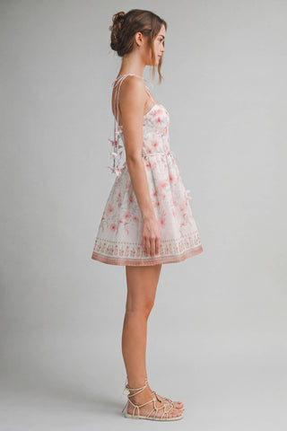 Garden Party Puff Sleeve Belted Cotton Mini Dress