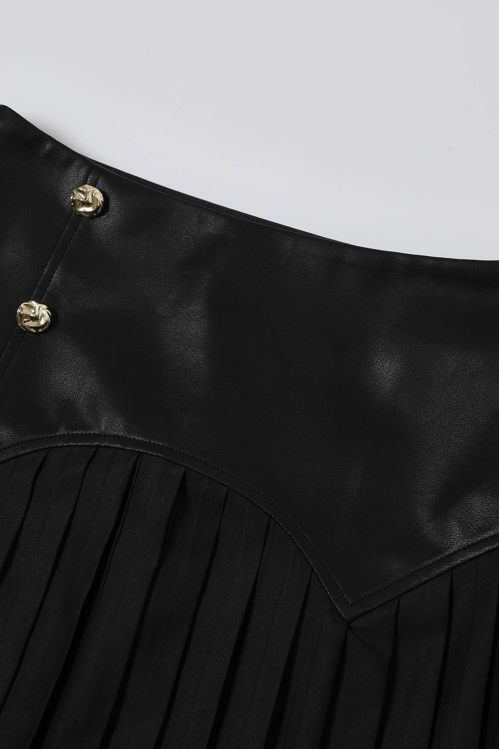 The Bordeaux Pleated Faux Leather Skirt is where timeless elegance meets modern edge. Featuring a smooth faux-leather waist panel with statement gold button detailing and a flowing pleated midi silhouette, this piece moves beautifully with every step. The rich wine hue adds instant sophistication, making it just as perfect for holiday soirées as it is for elevated everyday wear. Style it with knits, blouses, or a tailored blazer for a look that feels effortlessly polished.