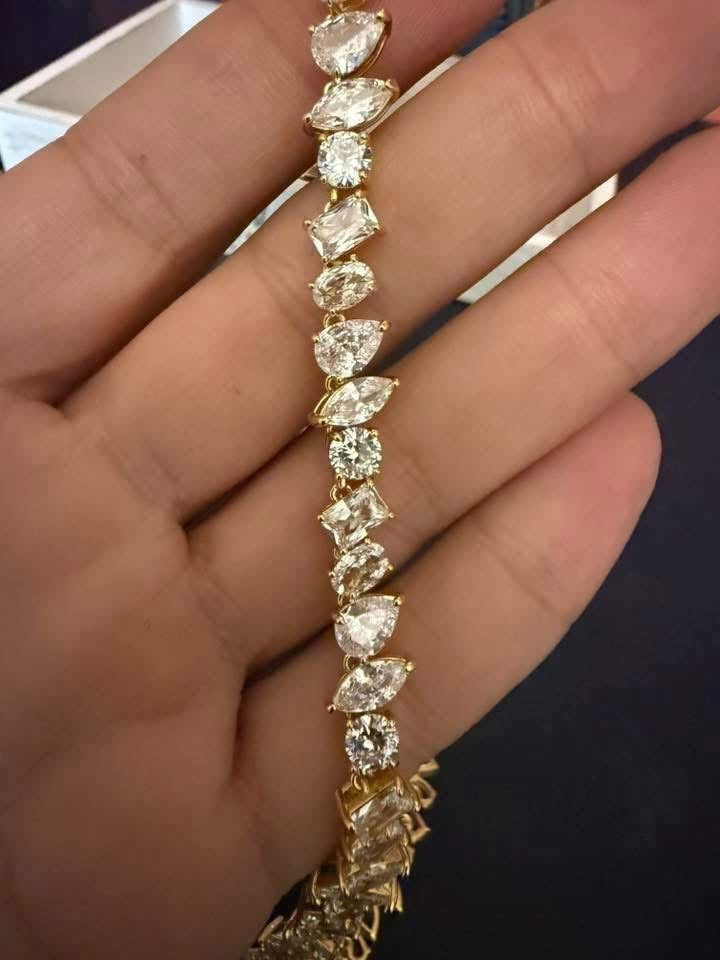 Indulge in luxury with the Pamela Tennis Bracelet. Featuring a stunning array of multi-shaped stones, this bracelet exudes sophistication and elegance. Whether adding a touch of glamour to a formal ensemble or elevating a simple outfit, this bracelet is the perfect accessory for any occasion.