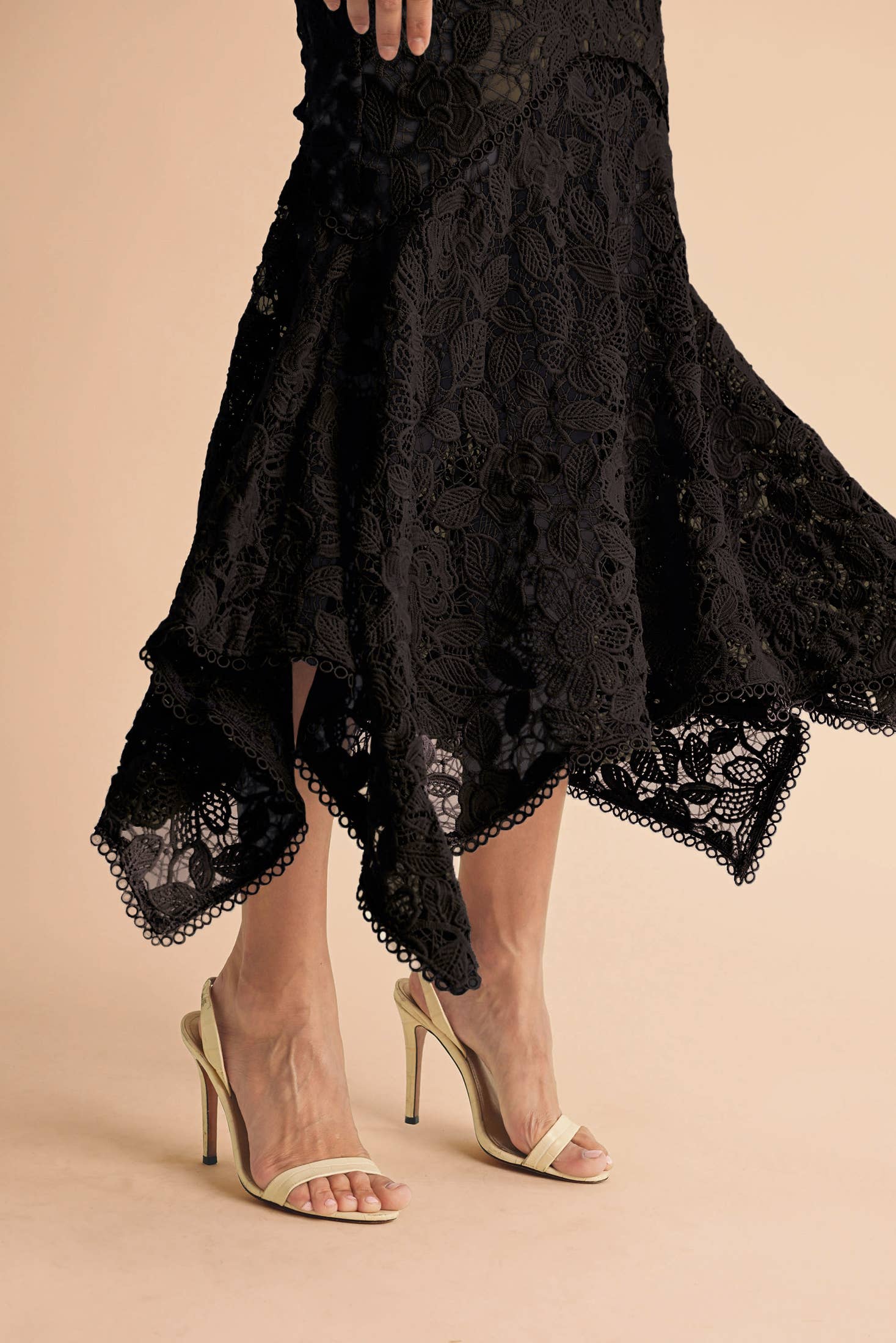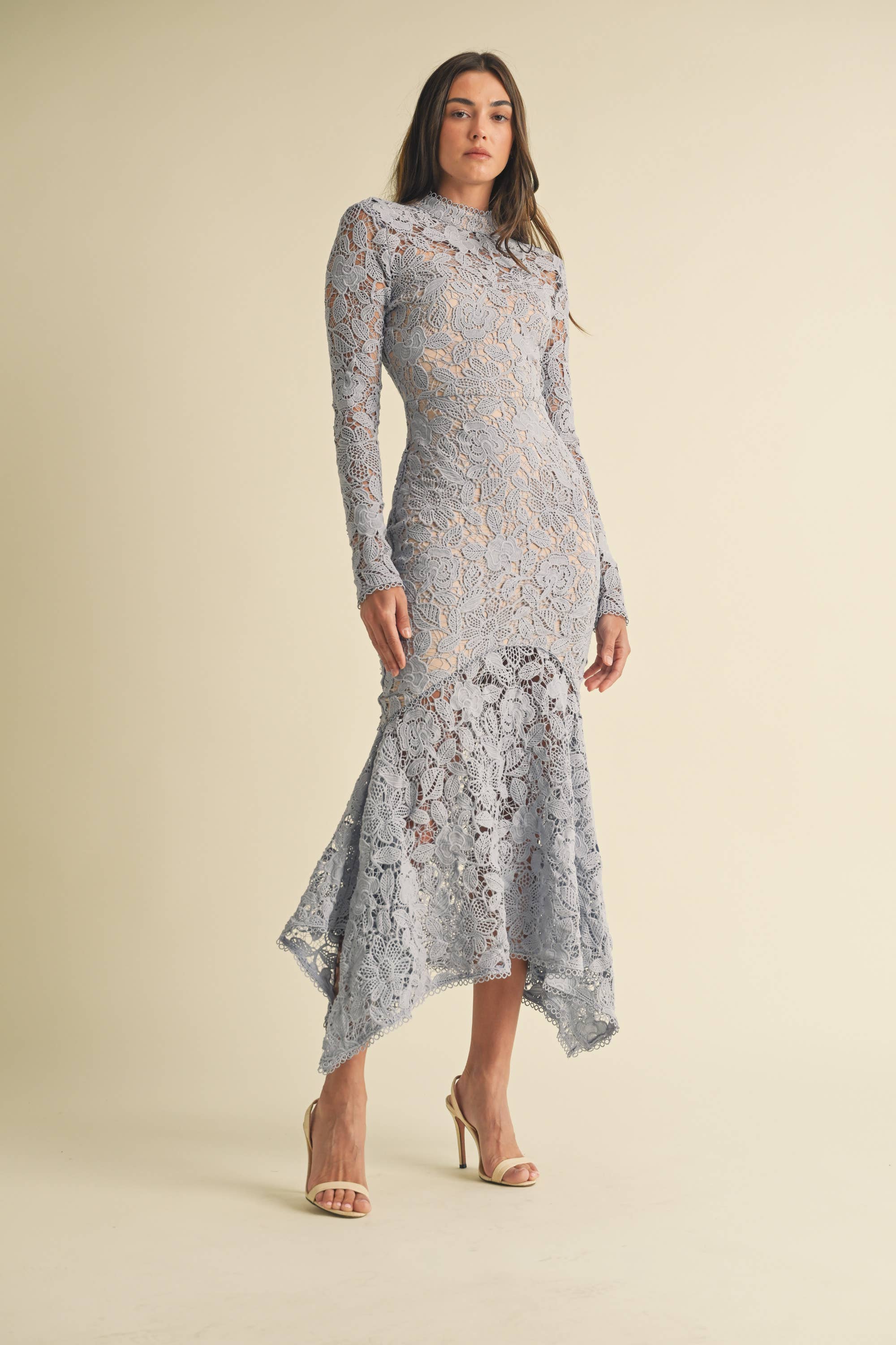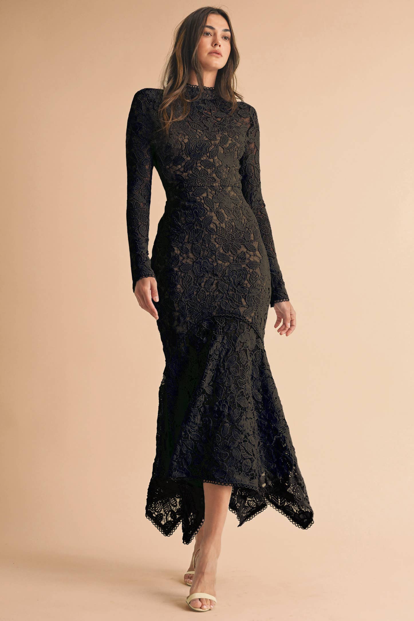 Romantic sophistication takes center stage in the Gramercy Lace Dress, where timeless elegance meets modern allure. Crafted in intricate floral lace, this form-fitting silhouette highlights the body’s natural curves while the high neckline and long sleeves lend refined balance. A softly flared hemline creates graceful movement with every step, offering just the right touch of drama. Whether in soft pastel, classic noir, or warm bronze, this dress is an unforgettable choice for evening soirées, weddings, and special celebrations.