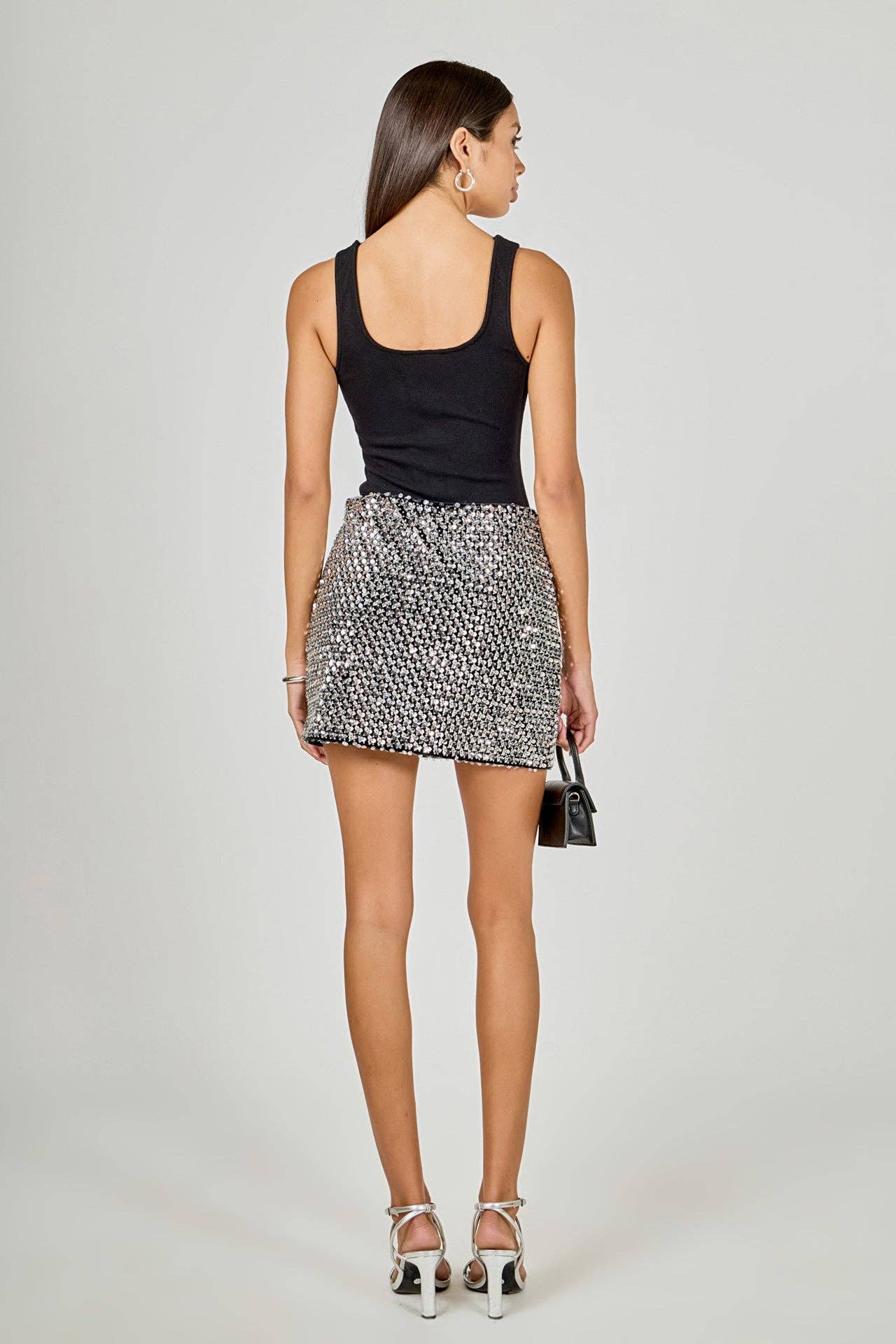 Floral Sequins Velvet Mini Skirt combines luxe velvet with intricate floral sequin detailing for a show-stopping look. Designed with a comfortable fit, this mini skirt is perfect for parties, date nights, or evenings out. Effortlessly glamorous and on-trend, this skirt is a must-have for any fashion-forward wardrobe. * Hand wash cold * Do not bleach * Do not tumble dry * Do not iron * Do not dry clean * Shell: 95% Polyester 5% Spandex * Lining: 100% Polyester * Contrast: 95% Polyester 5% Spandex CK1116K S BLACK: Height 5'9" / Bust 32" / Waist 25.5" / Hips 36"