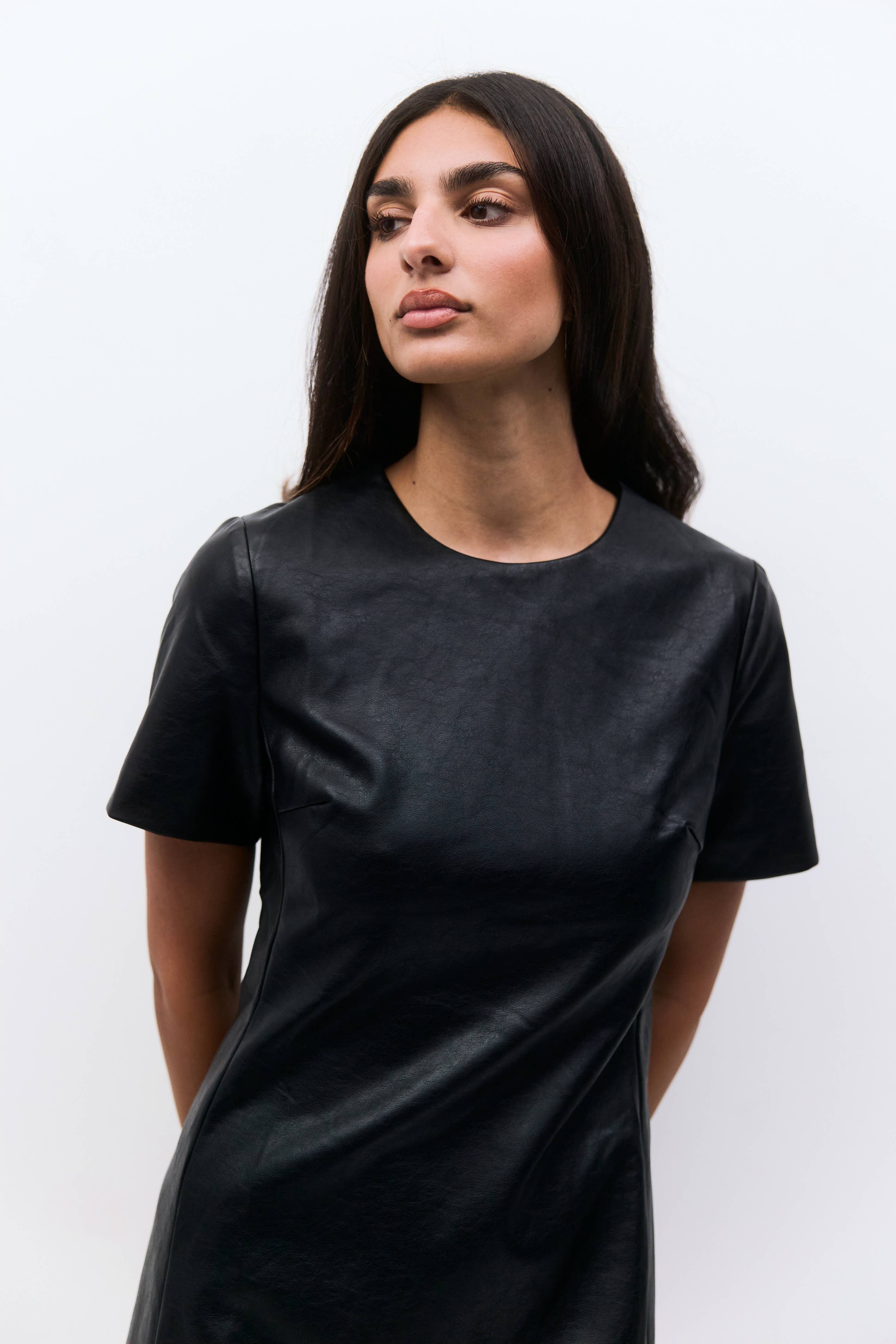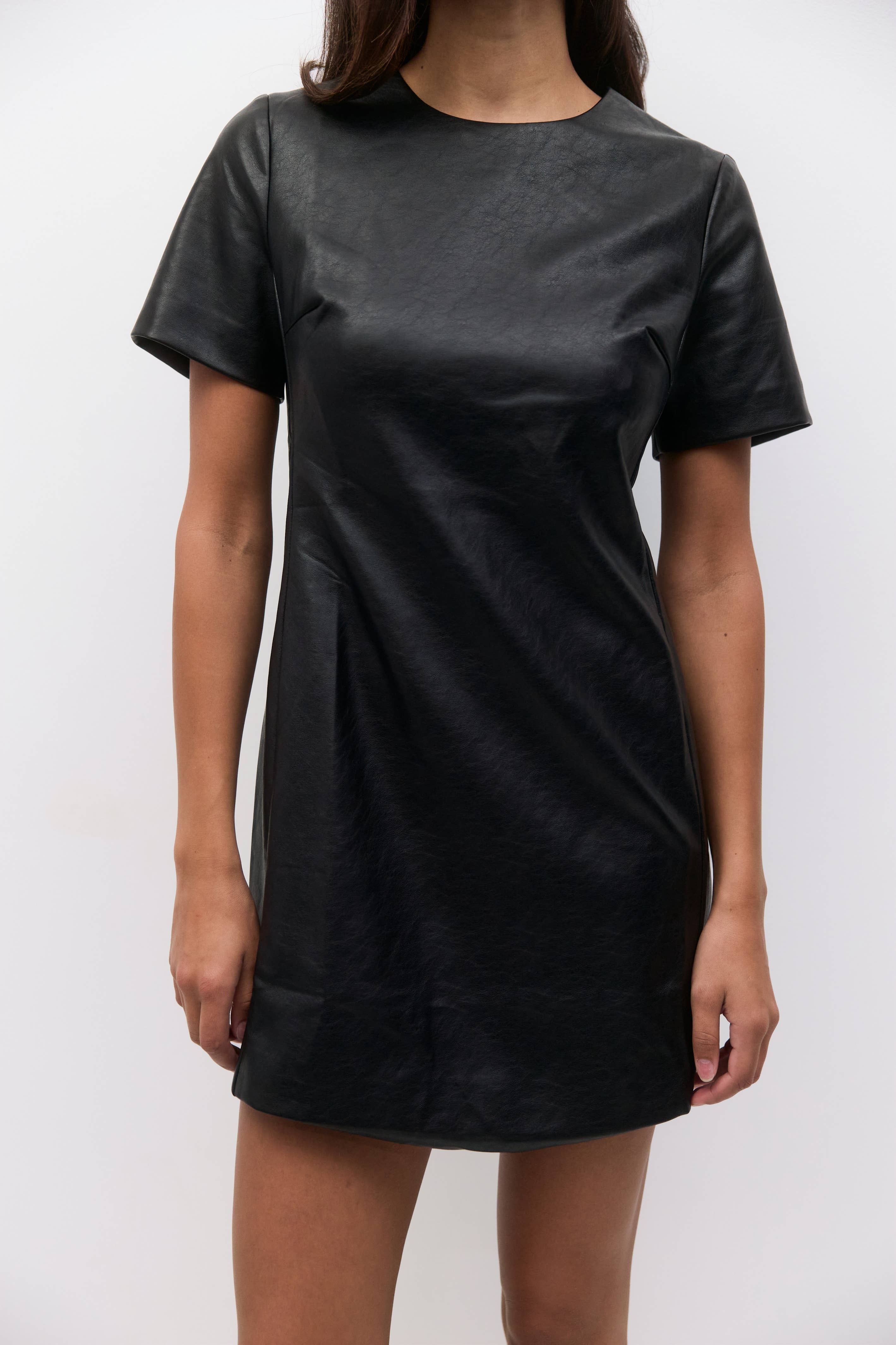 The Rebekah Dress | Pleather Short Sleeve Mini Dress