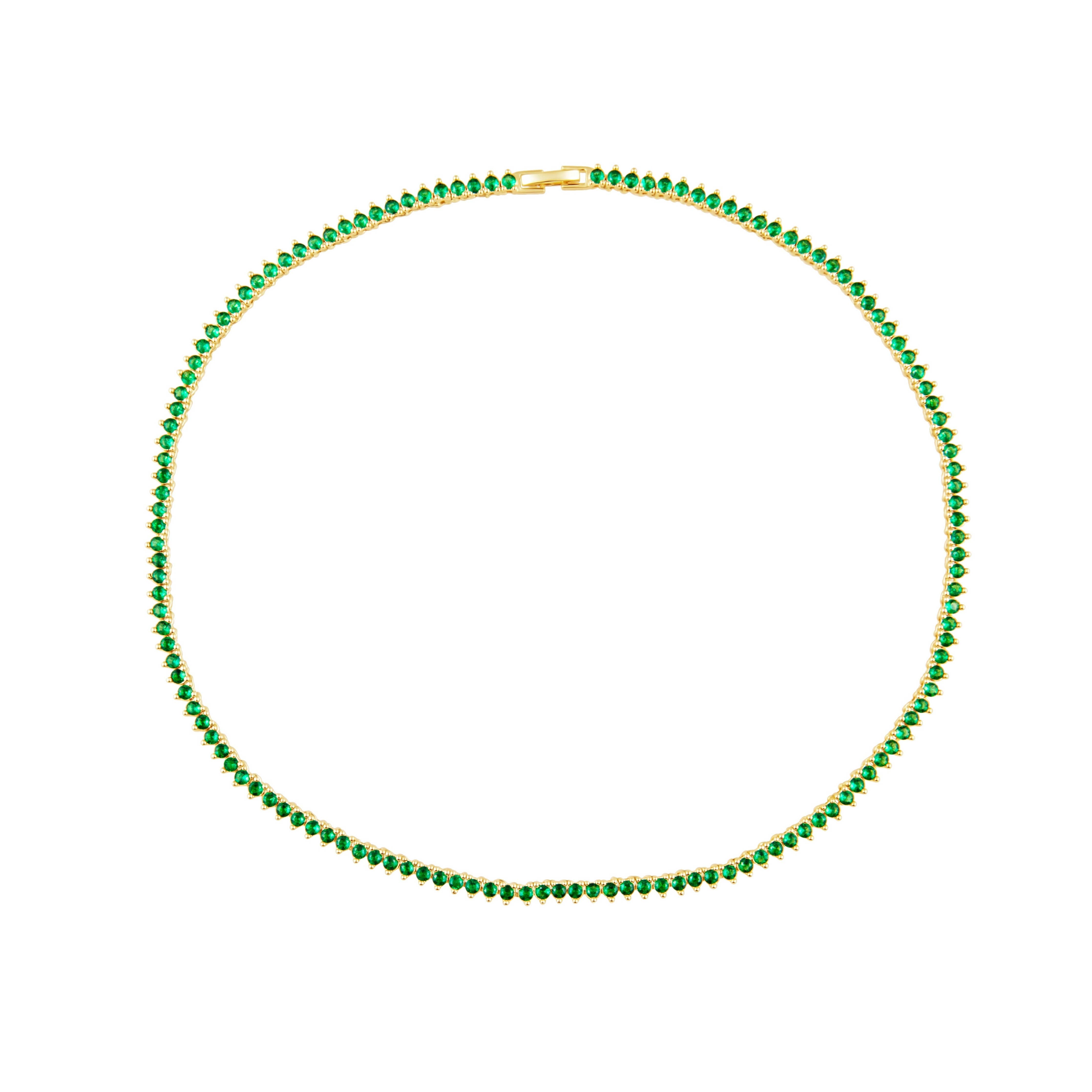The Melinda Tennis Necklace is the perfect necklace from our collection to add some sparkle and shimmer to your look all day or night long! 16 inches 14K gold plating over sterling silver Tarnish and water resistant Emerald CZ Stones