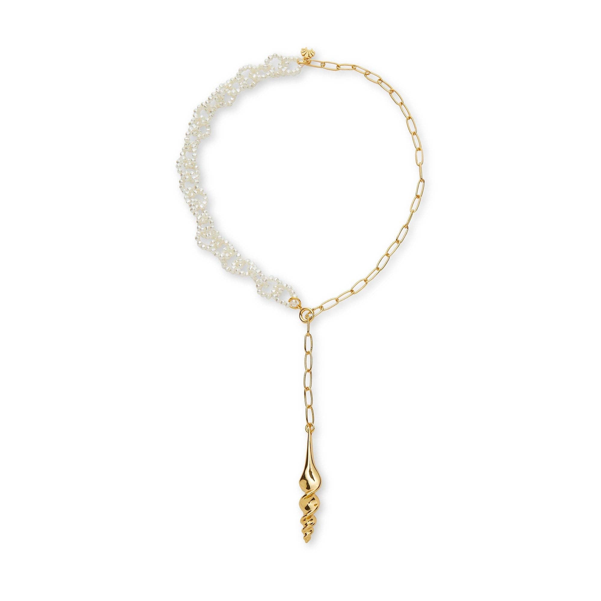 Our Turritella necklace combines delicate pearls with a bold gold pendant for a modern twist.