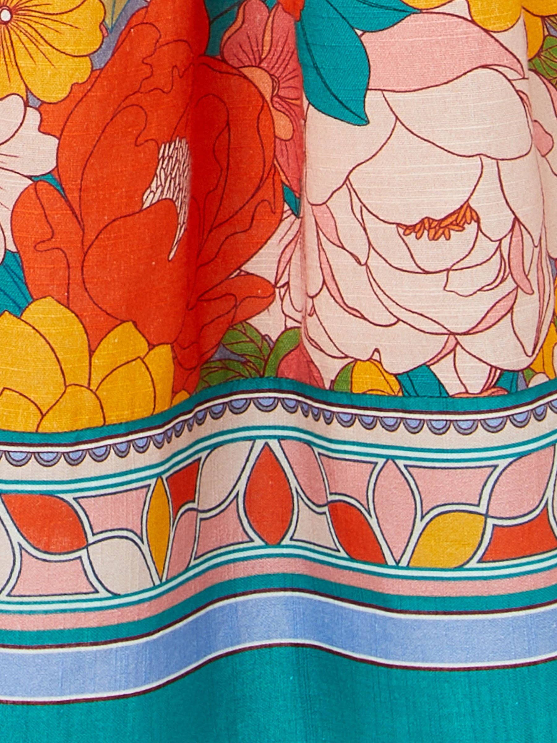 Crafted with an elastic waistband, the Joanna Skirt easily pulls on for maximum comfort and convenience. The optional tie fabric belt allows you to customize your look, while the functional front button placket offers the flexibility to reveal a lot or a little leg. The border print at the hem adds interest and sophistication, making this skirt a standout piece.