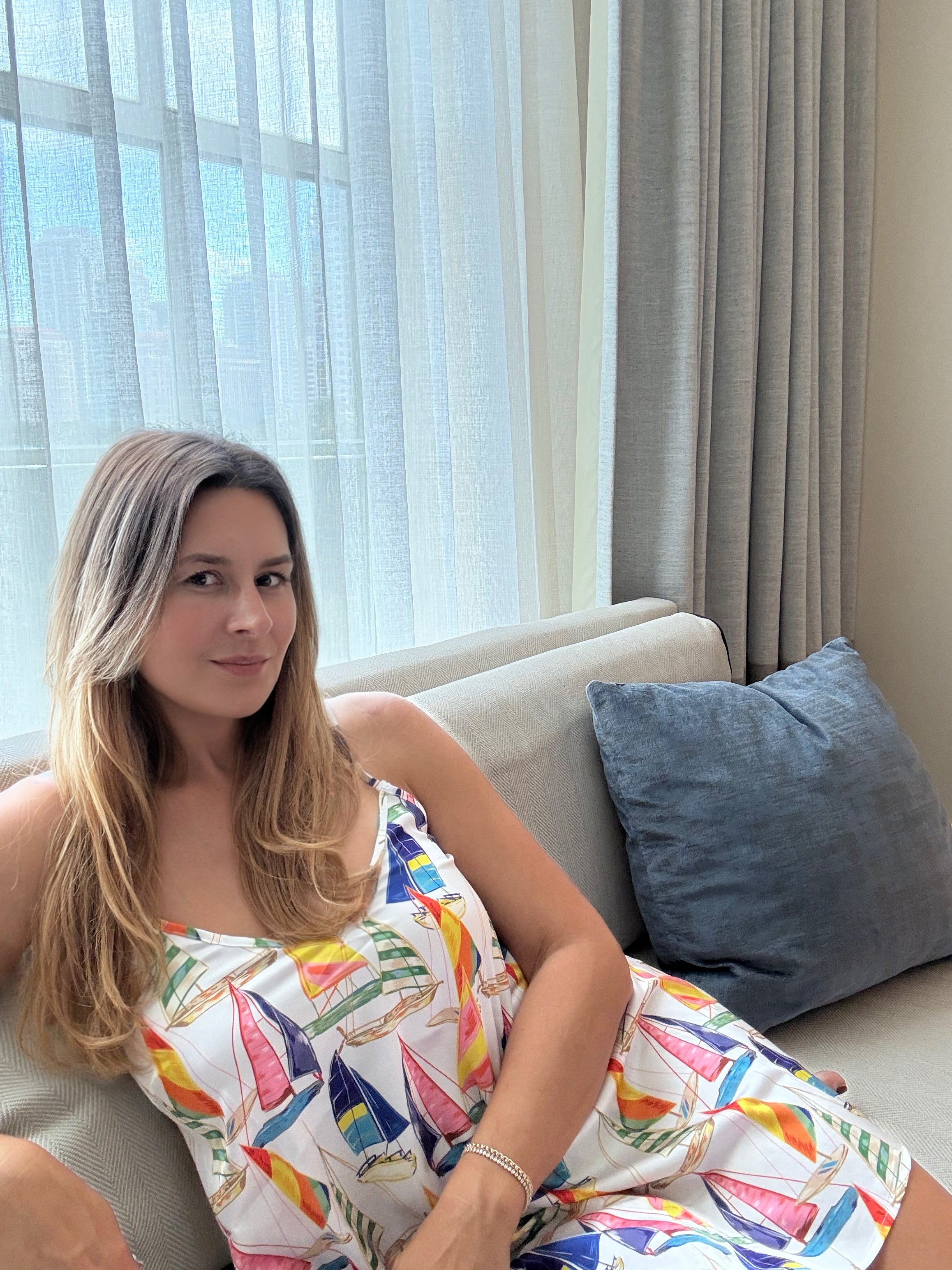 A sophisticated A-Line Mini Slip featuring a refined V-neckline and customizable straps for optimal fit. Crafted from premium simulated silk charmeuse, this elegant piece showcases an exclusive digital print of vintage-inspired sailboats in vibrant hues, combining classic nautical aesthetics with contemporary luxury.