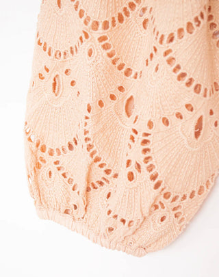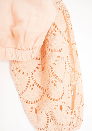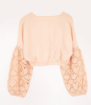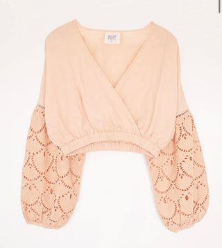 The standout feature of this blouse is the stunning embroidery detail. The cross front design adds a modern twist, creating a flattering and eye-catching silhouette. Puffed long sleeves with symmetric cutwork designs, for a playful, yet sophisticated twist.